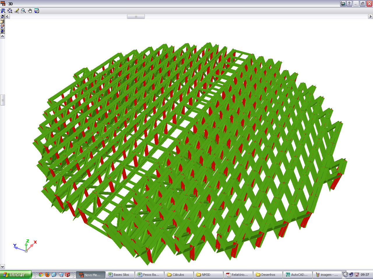 Cálculo de base de dois silos e lista de materiais para cada anel da base e em suporte central para o fundo plano circular.